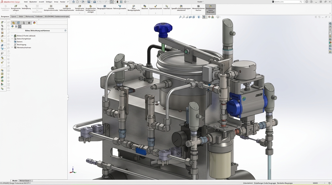 Ein besonderer Fokus liegt auf komplexen Systemen wie Konditioniereinheiten, bei denen mechanische, fluidische und steuerungstechnische Aspekte optimal aufeinander abgestimmt werden.